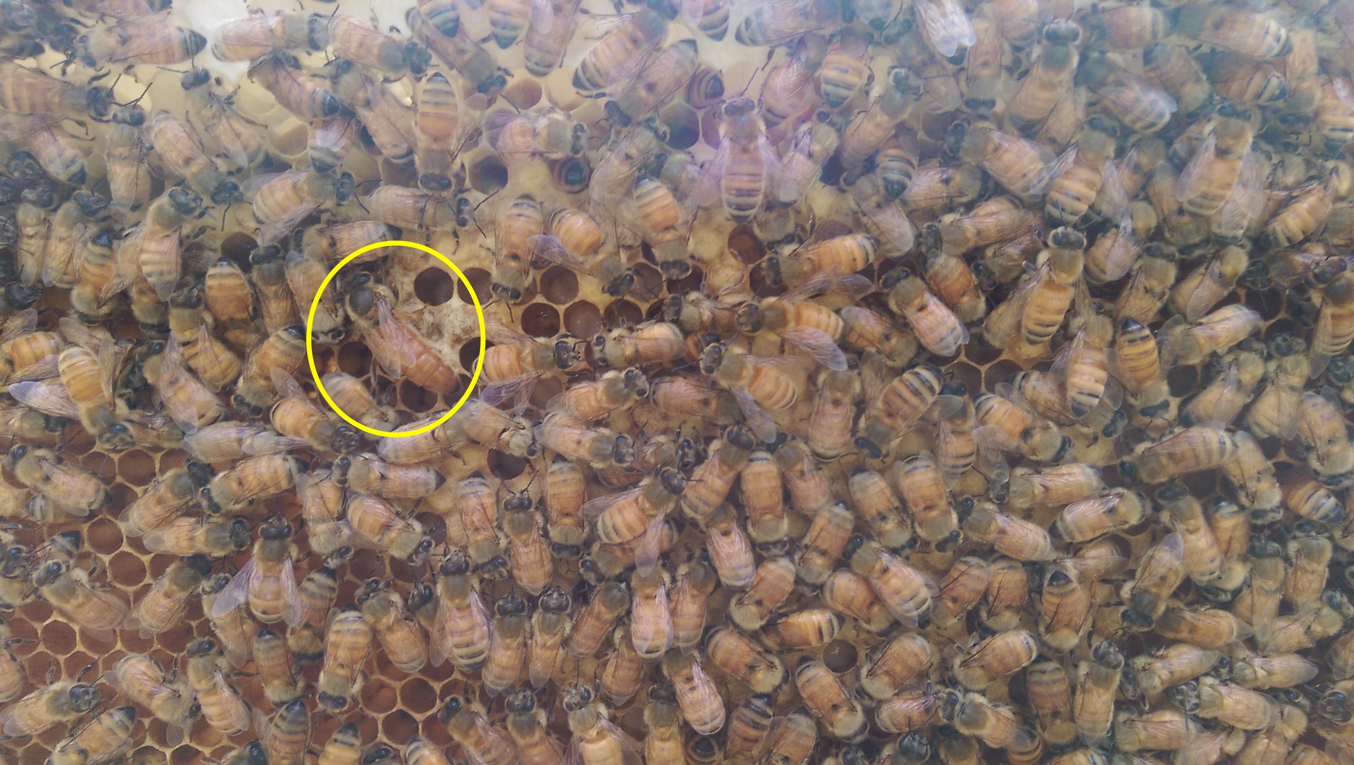 I’m just taking another look at Clint’s queen. She is a beauty, a real ripper:) Look at all of those lovely recently hatched bees.