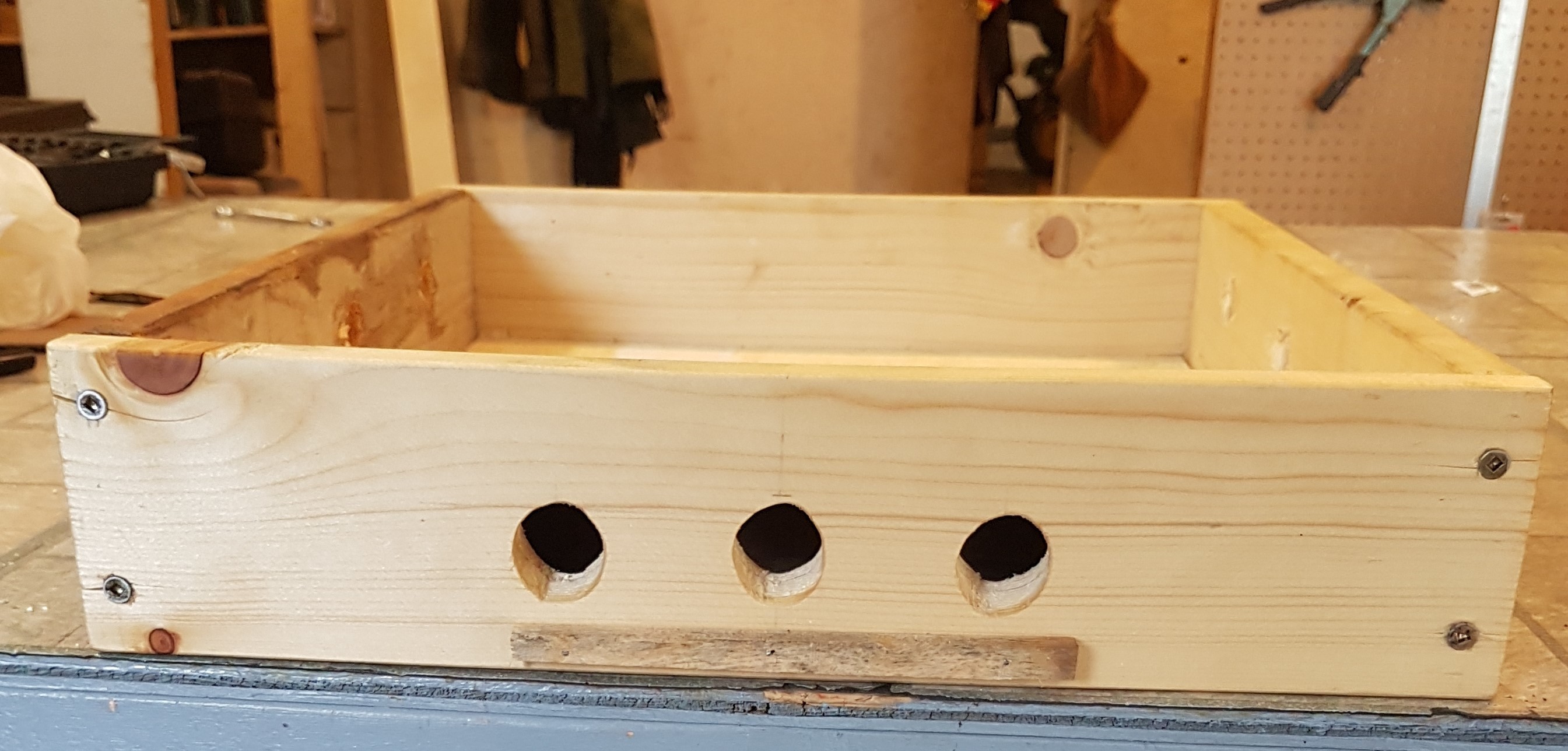 This Is what I came up with. I put screen in the openings where I didn’t want bees to go and I can use it as a quilting box this winter.