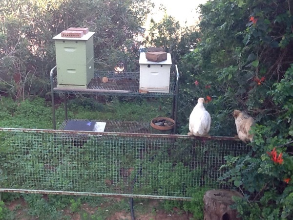 Chickies! Mine haven’t discovered the hives yet…and that’s probably a good thing. The exposed field the hives are in would make it easy pickins for hawks!