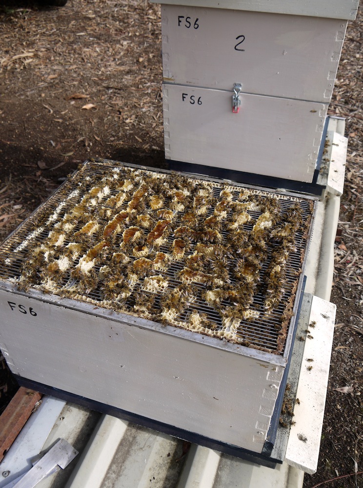 Today I removed the super that still had 4 full and 3 harvested frames to do an inspection of the brood box and see this. That took a bit of doing as it was well waxed together.